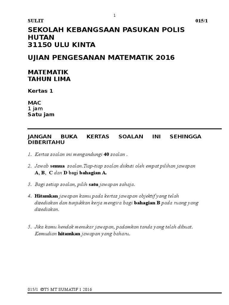 - soalan ujian bulan mac matematik kertas 2 tahun 5