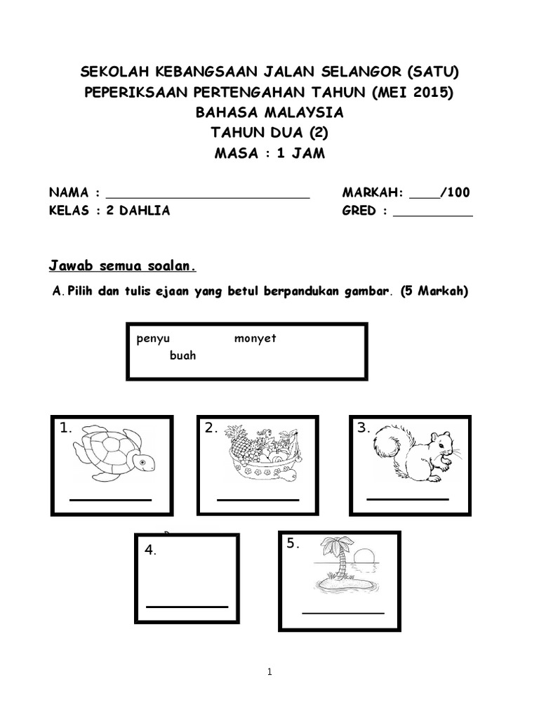 - soalan ujian bahasa melayu tahun 1 2019
